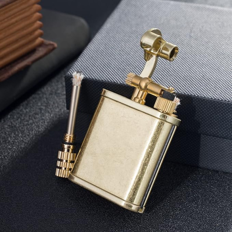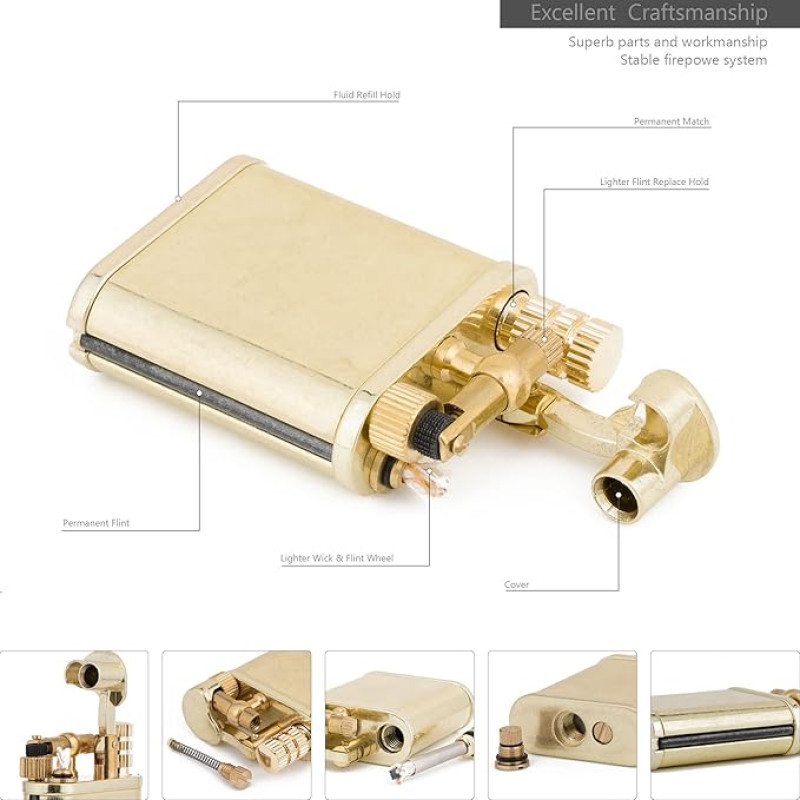 2 in 1 Lighetr Permanent Match Antique Style Lift Arm Kerosene Lighter with Permanent Match (Bronze)