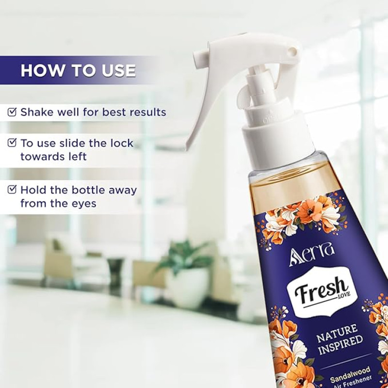 Aerra Lavender, Rose, Lemongrass, Sandalwood Air Freshener Spray Combo, 4x250ml – Sacred Zest Edition, 11200+ Sprays for Home, Pooja Room, Kitchen, Bedroom, Car, Office, Non-Aerosol Odor Eliminator