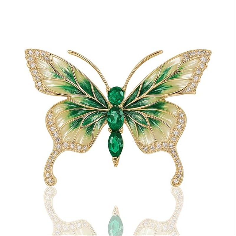 Ahamo Enamel Butterfly Brooches for Women - Elegant Crystal Accent Fashion Pin for Saree, Dress, Jacket, Kurti (Gold/Silver)