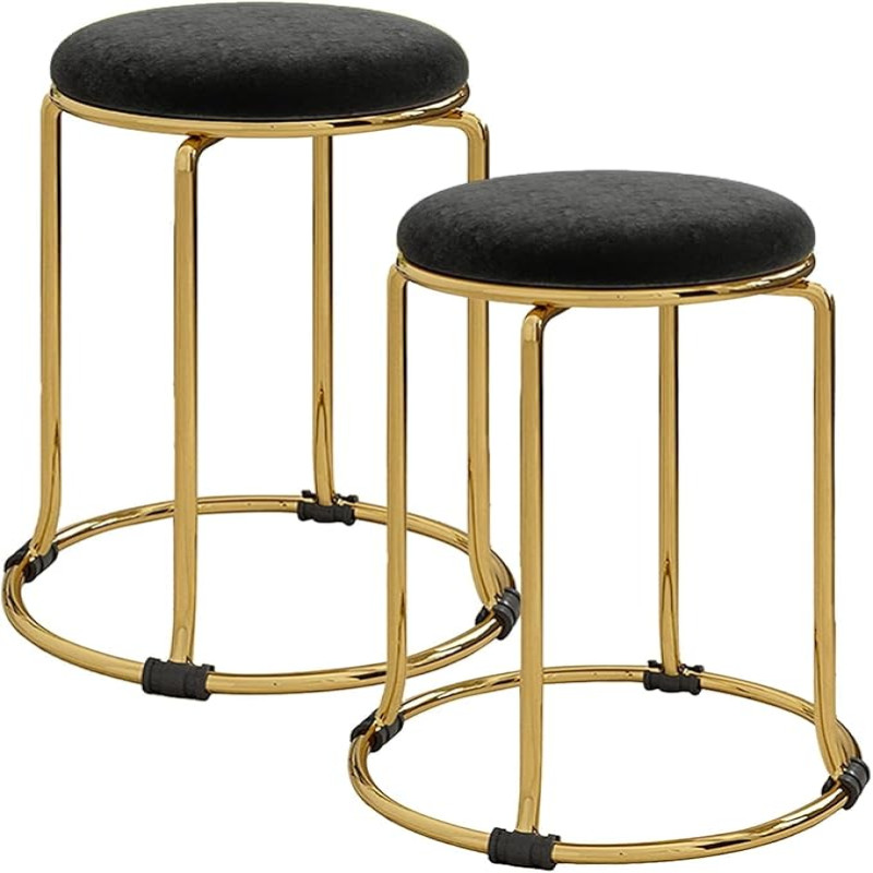 Akifi Craft Flannel Round Stool - Versatile Stackable Chair for Dining, Living Room, and Shoe Changing - Elegant Metal Low Stool for Home Furniture (Black, 2)