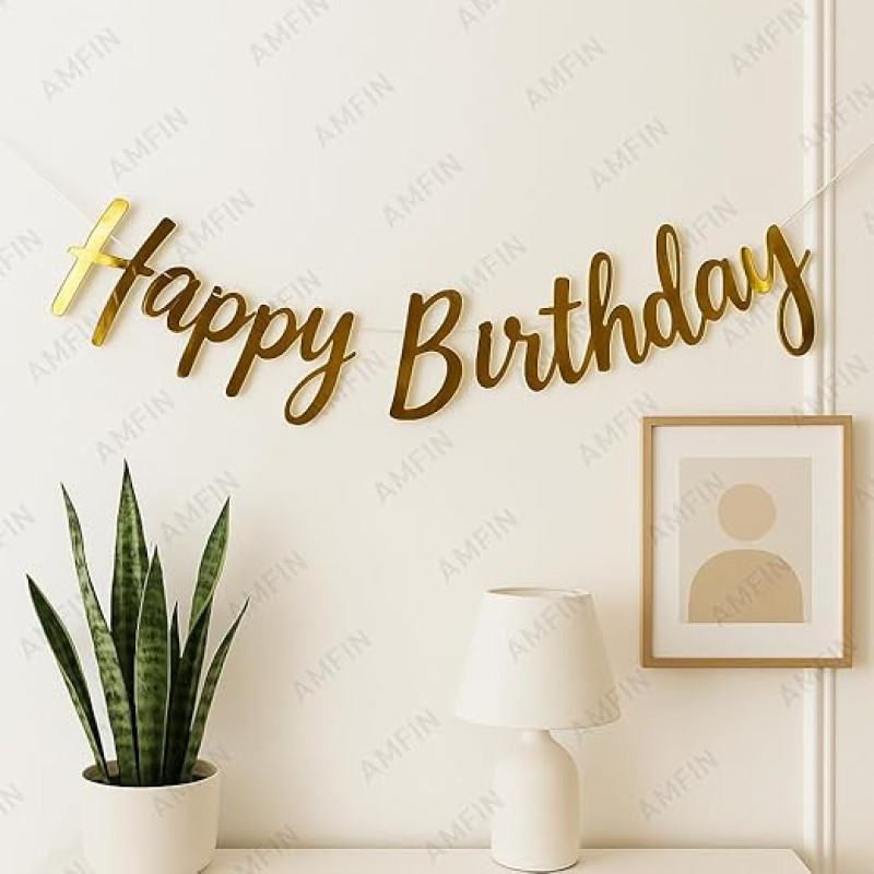 AMFIN (Pack of 1) Happy Birthday Party Cursive Metallic Banner - Gold