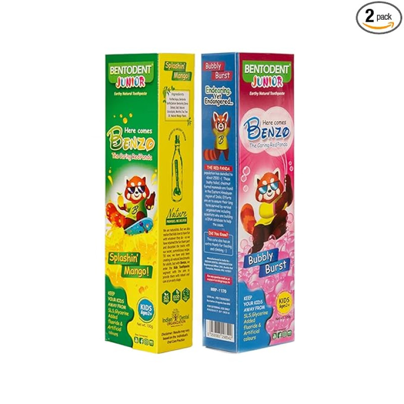 Bentodent 100% Natural Kids super saver pack bubble gum 100g & mango 100g Toothpaste, Fluoride Free, Sls Free, Complete oral care protection for kids, Fresh Breath, Best toothpaste for kids 2+ years 100g each