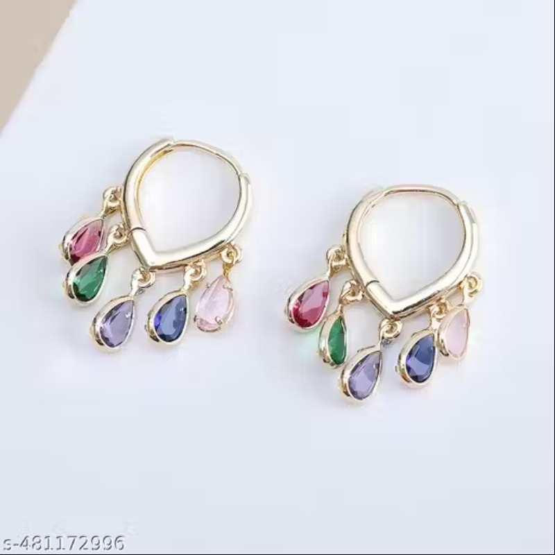 Name : Caria Jewellery Gold‑Tone huggie hoops with multicolor teardrop charms — ear rings for women stylish | ear rings for women | earring for women. Base Metal : Brass Plating : Gold Plated Sizing : Non-Adjustable Stone Type : Artificial Stones Type : Hoop Earrings Net Quantity (N) : 1 |