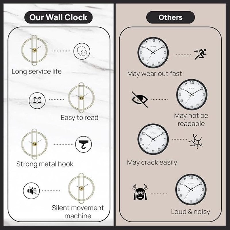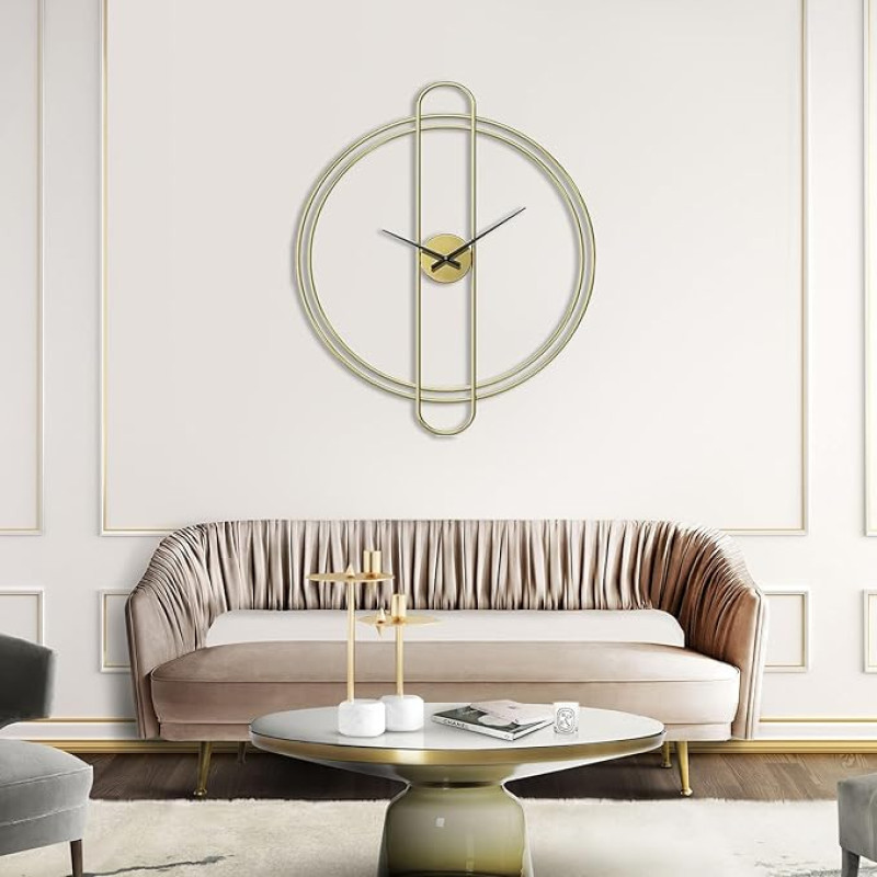 Click to see full view nestroots Large Metallic Analog Wall Clock for Living Room & Bedroom | 24-Inch Decorative Wall Clock for Hall, Office & Home Décor | Golden Frosted Modern Design