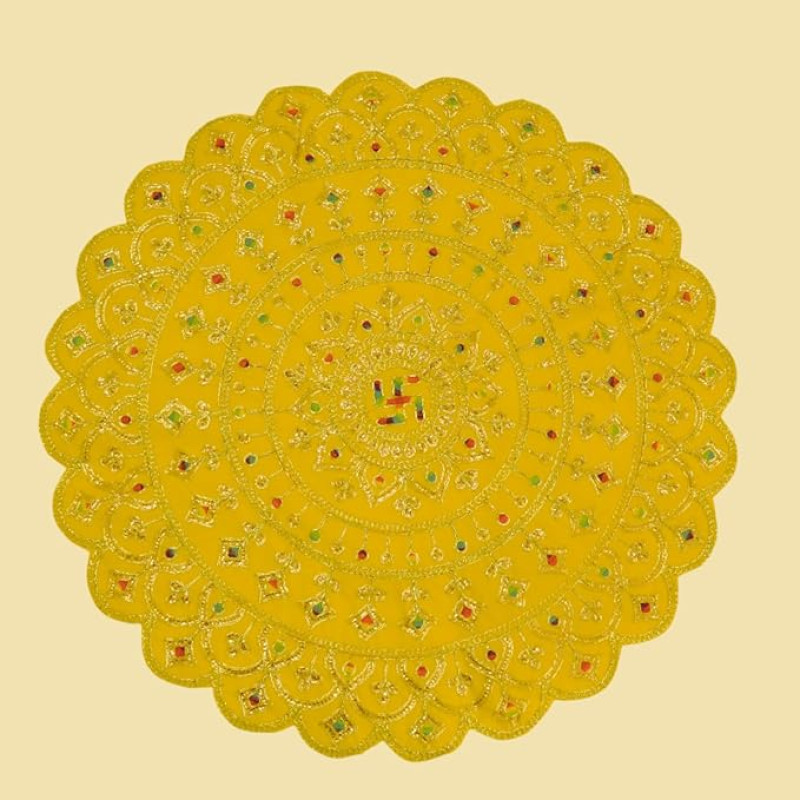 Divineaasan Pooja Aasan for Mandir Home Temple Idol Placement | Velvet Designer Puja Altar Cloth Mat Home Office Base Chowki | Festivals & Daily Rituals (65 cm, Yellow)