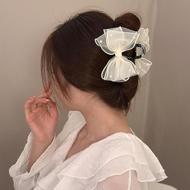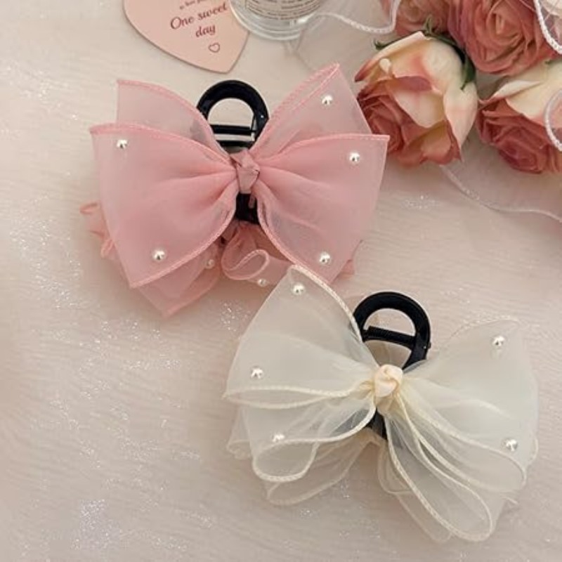 DORMITORRY Bow Hair Claw - 2 pcs, Multicolor, Medium to Thick Hair, Women's Hair Accessory, Satin Silky Bow, Juda Claw