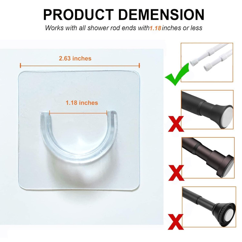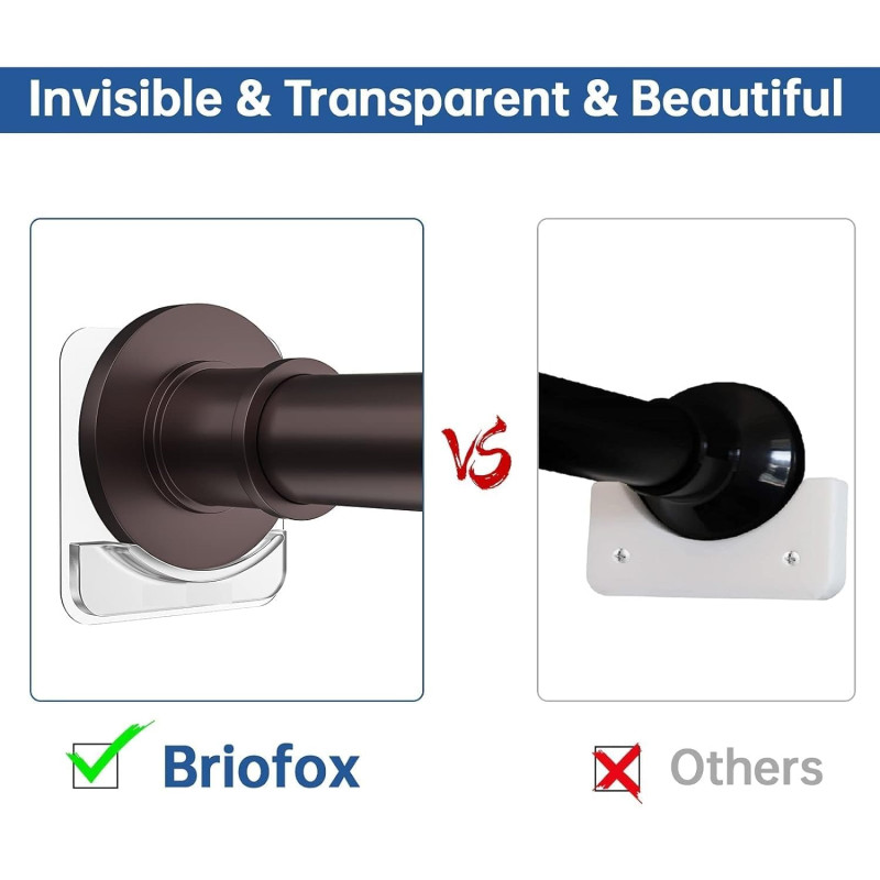 ELMVIA QARB Transparent PVC No Drill Curtain Rod Brackets Self Adhesive Curtain Rod Holder Hooks Nail Free Adjustable Curtain Rod Hooks for Bathroom Kitchen Home Bathroom and Hotel (4PCS)