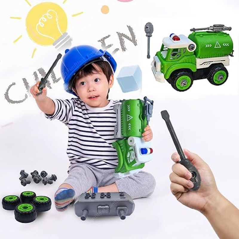 FunBlast Tanker Truck Construction Building Toy - DIY Assembling Vehicles Toys with Screwdriver for Kids, STEM Toys for Children, Building Automobile Toy for 3+ Years Old Kids, Boys, Girls