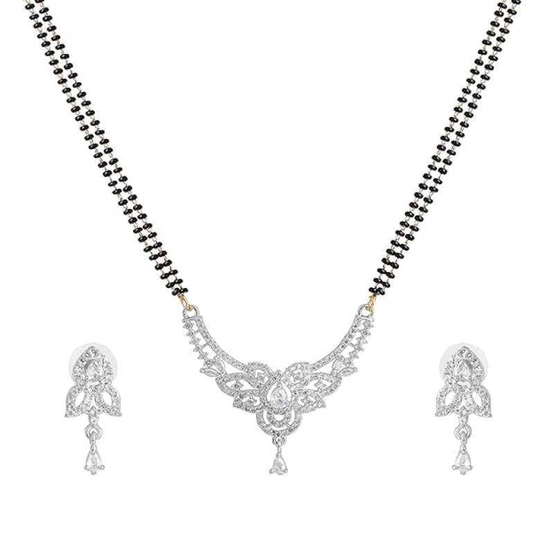 Fashion Jewelry Mangalsutra Set for Women: Gold & Rhodium Plated Timeless Elegance Mangalsutra Necklace Set with White Crystals- Tradition & Modernity for Women-OSAKMS008-IRWE NKER