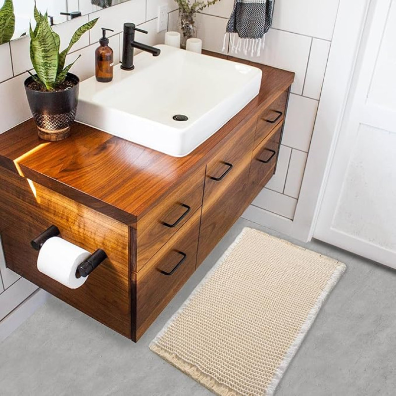 HomeCloud Waffle Bath Mat, Super Absorbent Non Slip Bath Mats for Bathroom Floor, Machine Washable Bathroom Rugs with Tassels,Bathroom Mats,Ultra Soft (Cream)