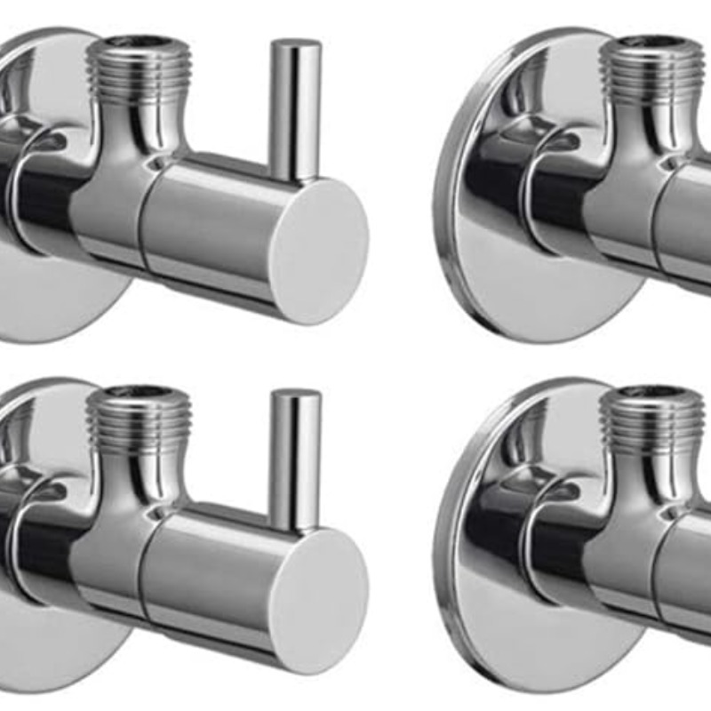 JAGGER TURBO Brass Disk Angle Valve For Bathroom, Wash Basin, Geyser With Wall Flange & Teflon Tape Set Of 4