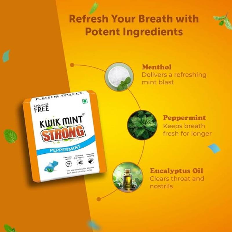 Kwikmint Premium Strong Sugar-Free Instant Dissolving Mouth Strips | Paper Mint Mouth Freshener for Fresh Breath, Fights Bad Breath – Pack of 4 (352 Strips)