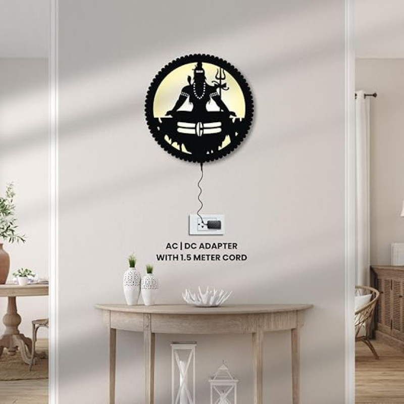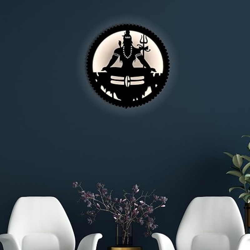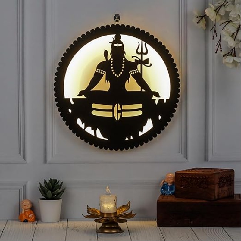 LASER ART Lord Shiva Wooden LED Wall Decor Light | Meditating Shiva Backlit Wall Hanging Lamp | Wooden Spiritual Wall Art for Pooja Room, Living Room, Meditation & Home Decoration