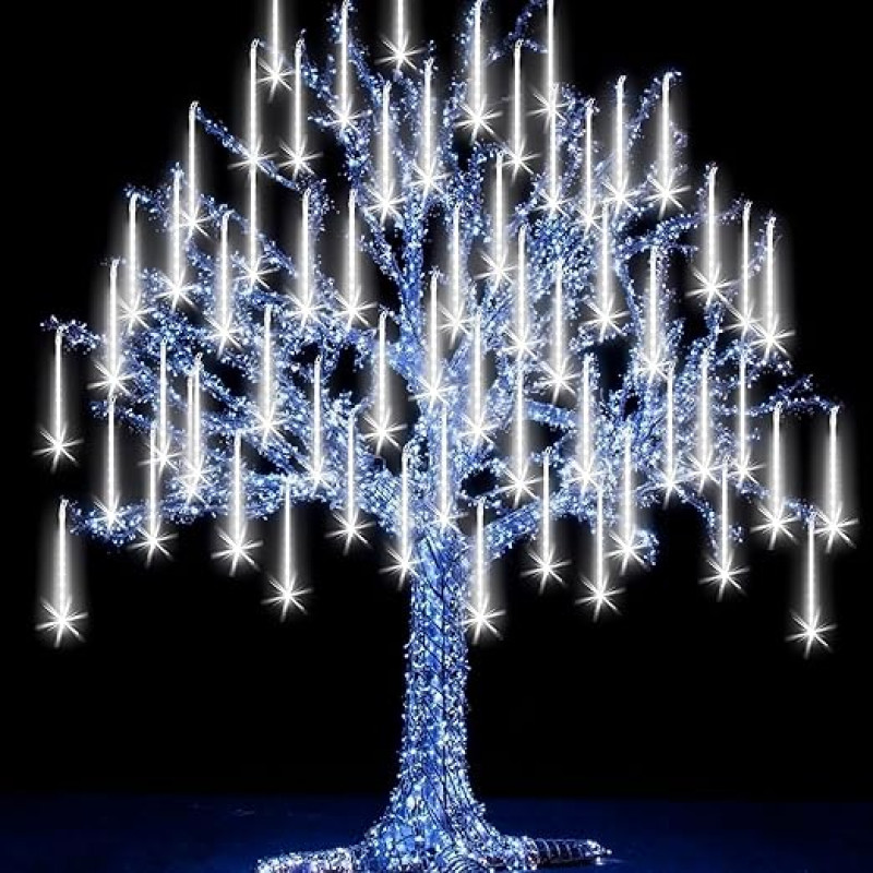 Litehom Rain Drop LED Meteor Shower 192 LEDs 8 Tubes (11.8") | Icicle Falling Effect for Diwali, Christmas, New Year, Home & Outdoor Decoration, Balcony, Tree, Party Decor (Cool-White)