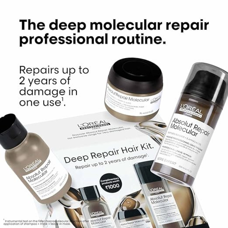 L'Oréal Professionnel Deep Repair Hair Kit with Absolut Repair Molecular Range | Sulfate-free shampoo (100ml), cream mask (75ml), leave-in cream (100ml) | For very damaged hair