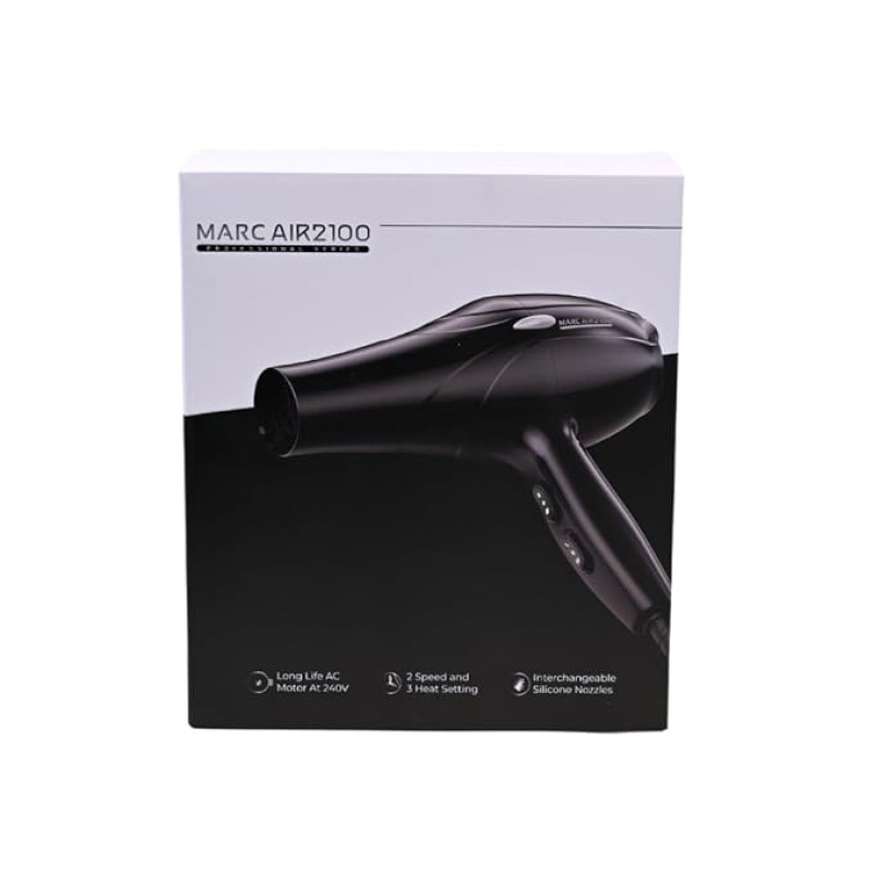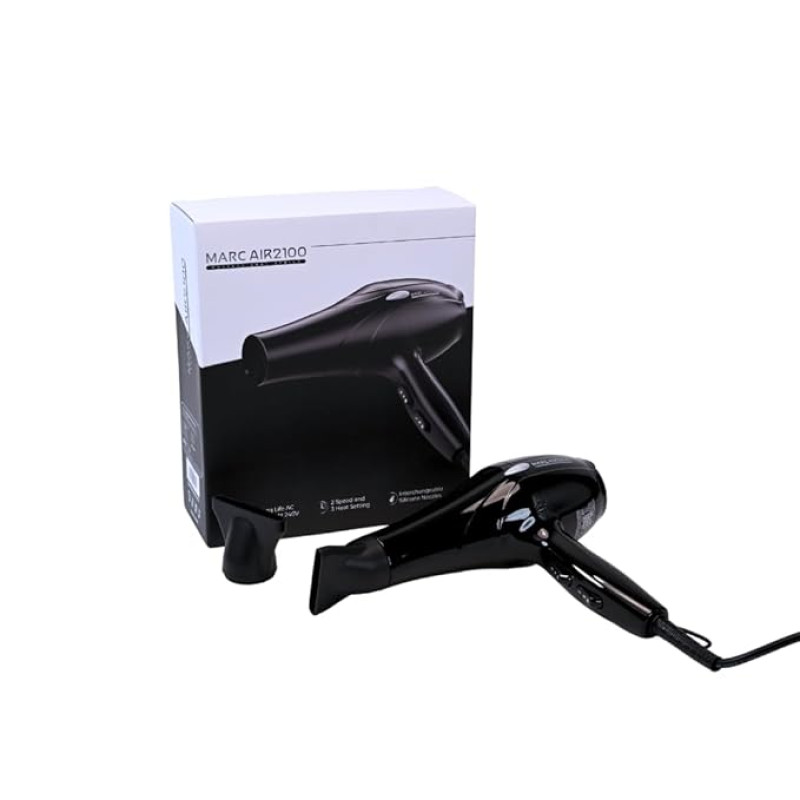 Marc Air 2100 Hair Dryer, 240V, 2 Speeds, 2 Heat Settings and Silicone Nozzles