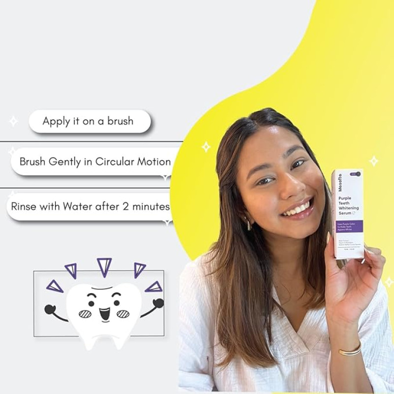 Masofta Purple Teeth Whitening Serum With Bromelain & Papain For Yellow & Dark Teeth Stains, Purple Toothpaste, For Both Men & Women, (Pack of 50ML X 3)