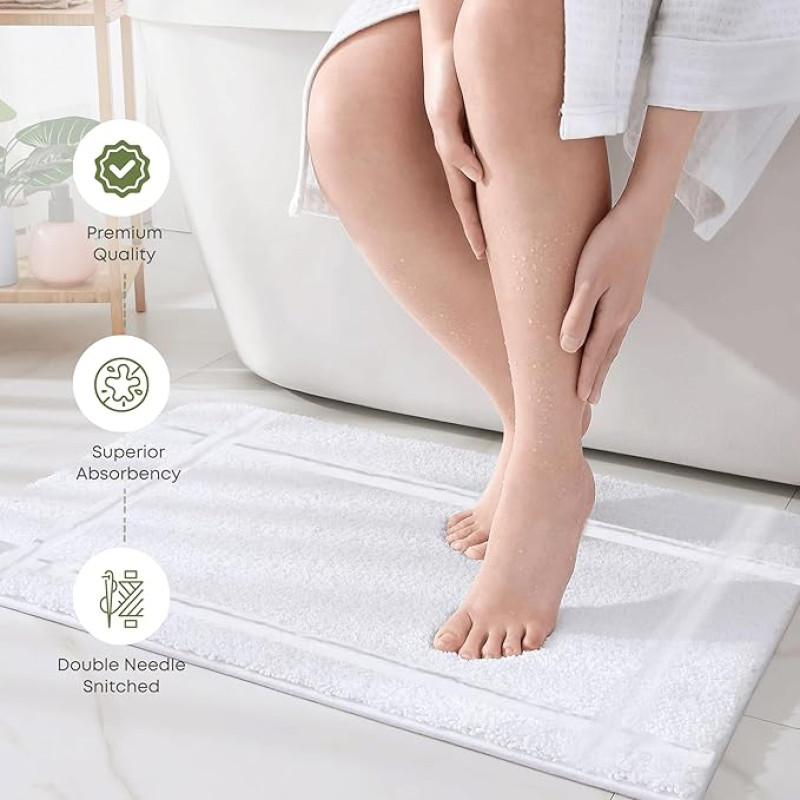 Pro Linen 100% Cotton Bath Mat 800 GSM | Standard 75x50 | Hotel Frame | White | Pack of 3