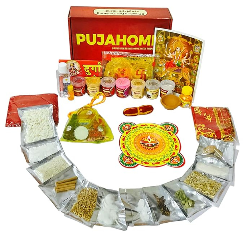 Pujahome Navratri Puja Samagri Kit-15 Items | Ghat Sthapna Poojan Kit for Maa Laxmi, Ambe, Durga | Durga Pooja Kit | Navratri Special