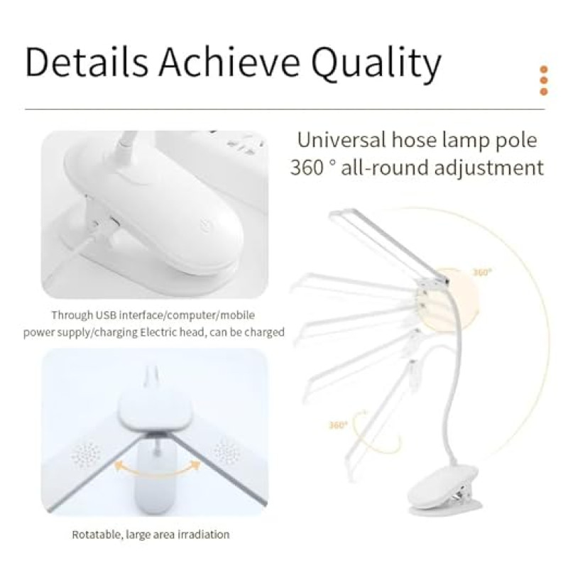 RATAVA Plastic 3 Colour Mode LED Table Lamp Folding Neck Reading Light Rechargeable LED Reading Light Study Lamp For Students, Night Light For Study Room 1Pc (Desk Lamp With Clip), White