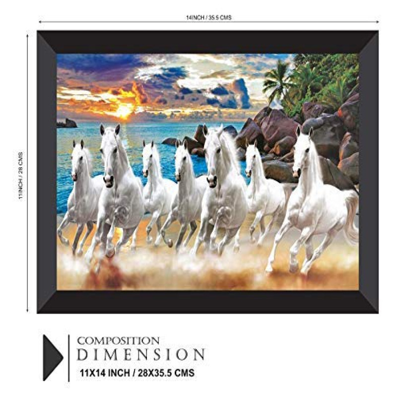 SAF paintings 7 Running Horses Vastu UV Teatured Digital Reprint Framed Painting (11 inch X 14 inch) SANFK51