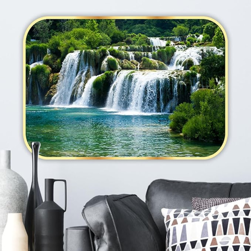 SAF paintings Waterfall Nature UV Coated Home Decorative Gift Item Framed Painting 14 inch X 20 inch SANFM3049, Multicolor, Standard