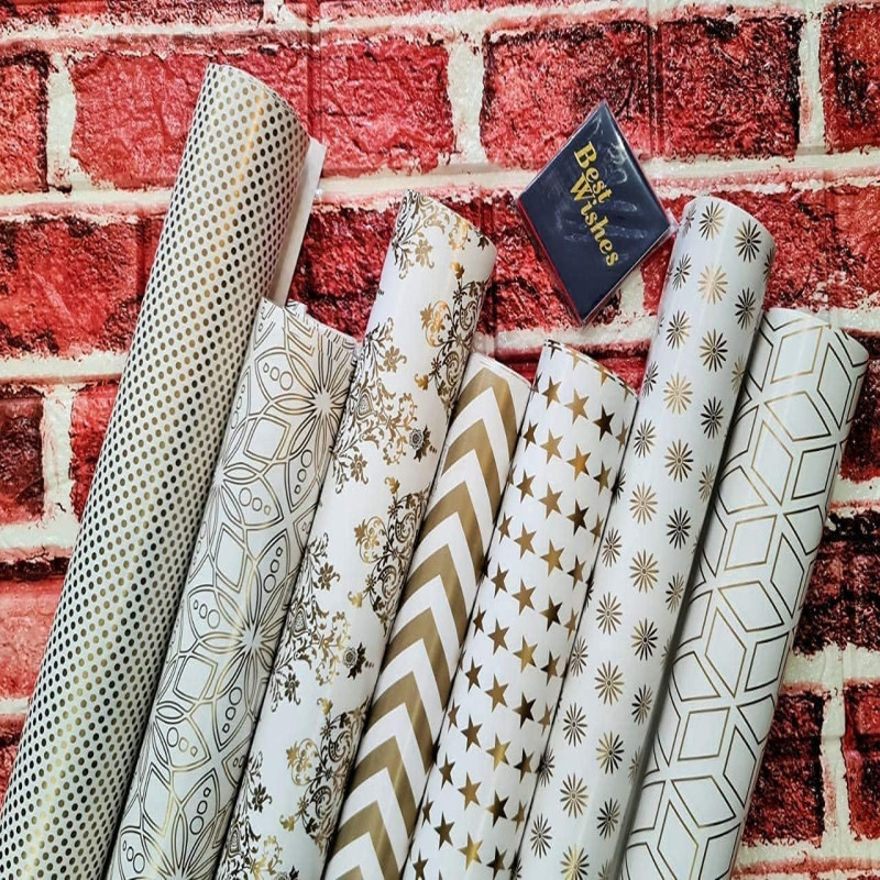 SATYAM KRAFT 10 Pcs White & Golden Premium Design Gift Wrapping Paper for gift Packing Sheets Decorative Romantic Gift Wrap for Birthday Box, Anniversary, Wedding, Return Gifts, book Cover, Packaging material, Craft, kids