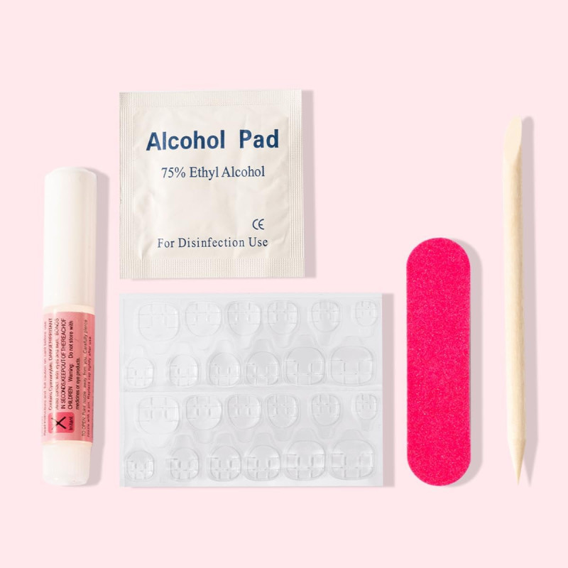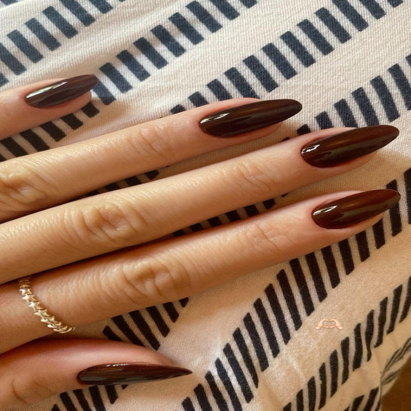 Set of 14 pc, Press-On Nails, Dark Maroon Almond Shape, Glossy Finish with free glue kit