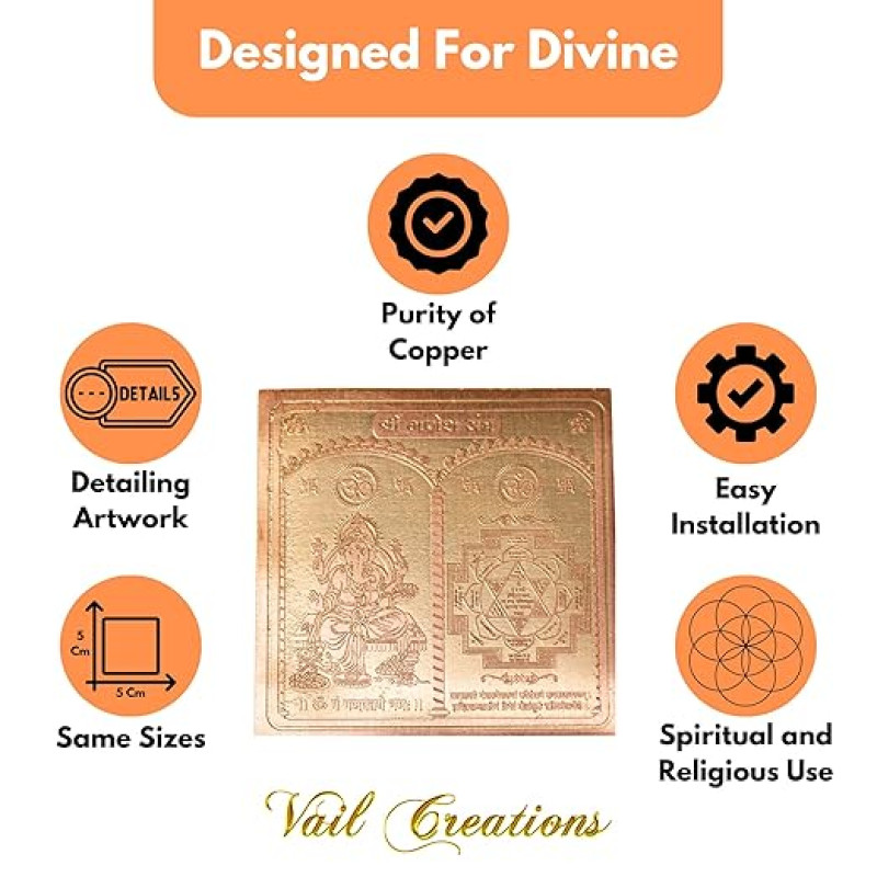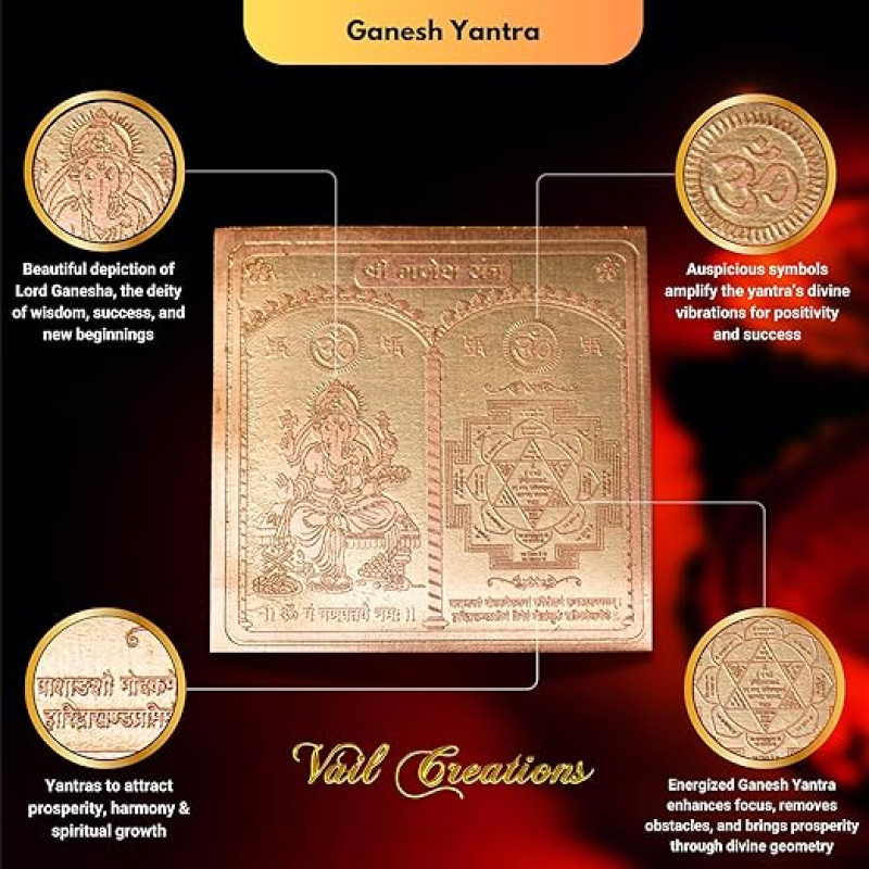 Shri Energised Ganesh Yantra Copper Original for Home Vastu Office Mandir Pooja Room Shop Health Wealth Success Positive Energy Prosperity | Shree Panchnan Ganesha Yantra