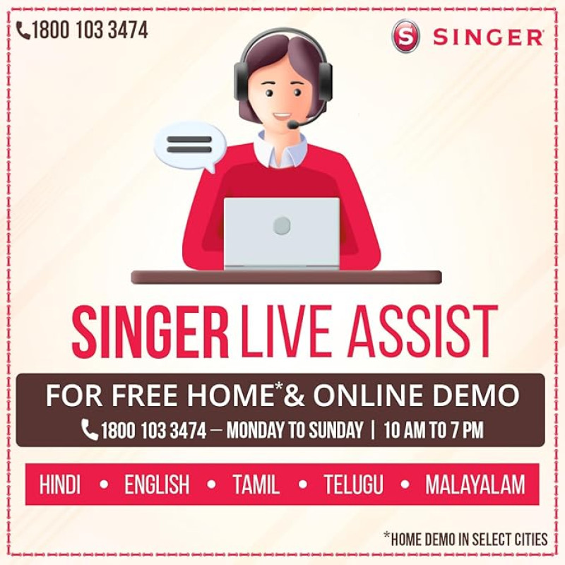 Singer Promise 1408 Zig-Zag Sewing Machine, 8 Built-in Stitches, 24 Stitches Functions with 70W Powerful motor & Feed dog with106 Teeth in 6 Rows (White)-Get Free Online Interactive Master Class