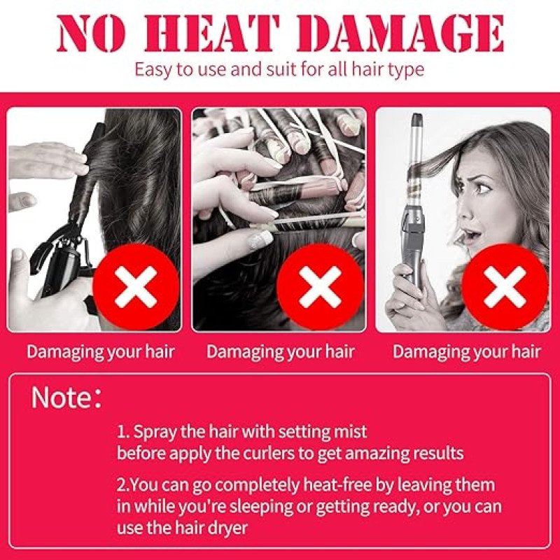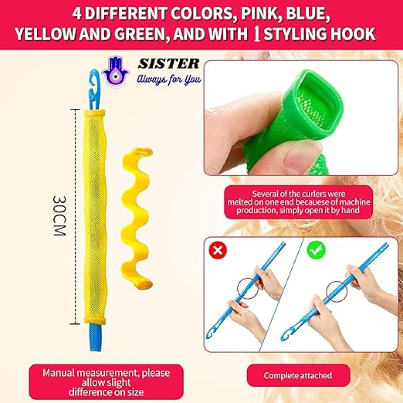 Sister 12 Pieces Heatless Hair Waves Curlers Spiral Curls Styling Kit No Heat Hair Curlers Waver Spiral Curlers Hair Rollers With 1 Piece Styling Hook For Most Hairstyles (30 Cm)