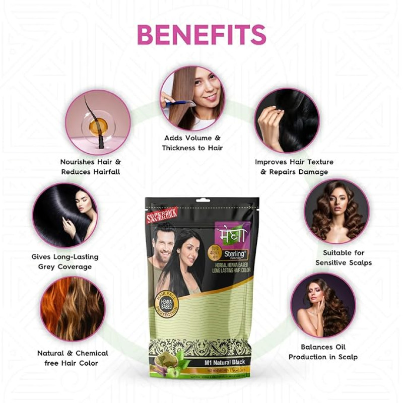 Sterling Naturals Megha Mehandi Hair Care Powder – Megha Mehandi (Pack Of 4) For Natural Hair Color Solution | For Men & Women 45GM