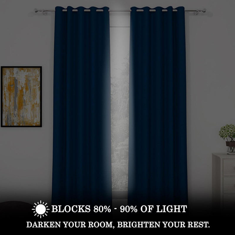 faux silk, color : Navy Blue | Story@home blackout curtain 7 feet set of