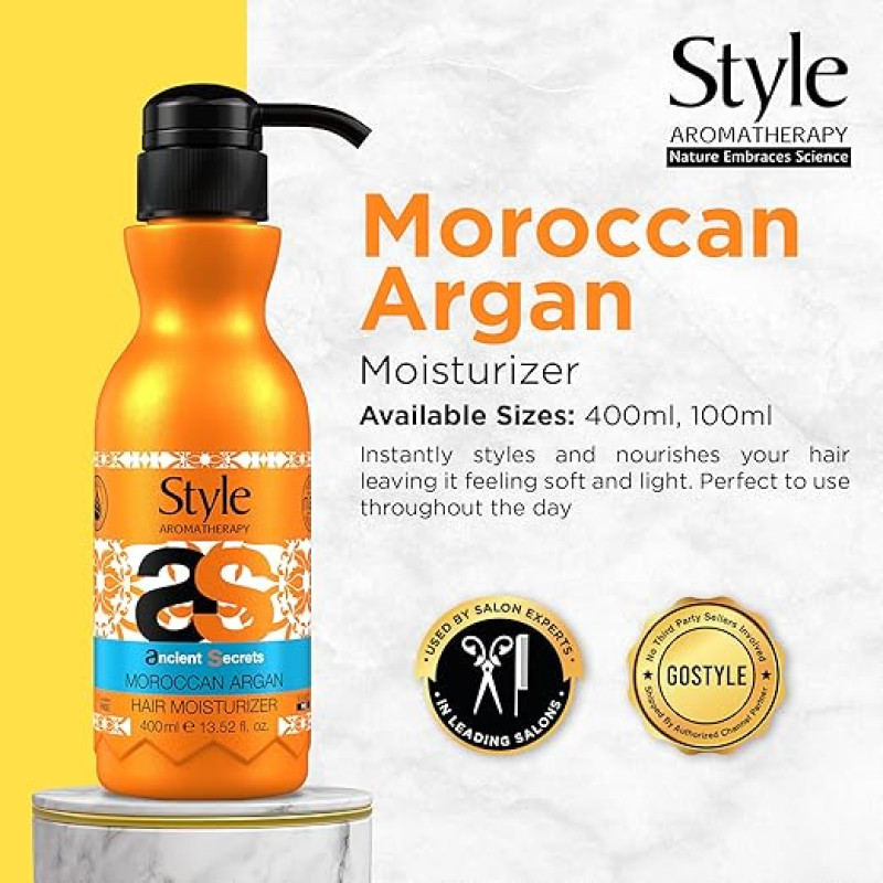Style Aromatherapy Professional Moroccan Argan Leave-in Hair Moisturizer Hair Cream 400 ml | Morrocan Argan Treatment Cream For Dry, Damaged, Dull, Frizzy Hair
