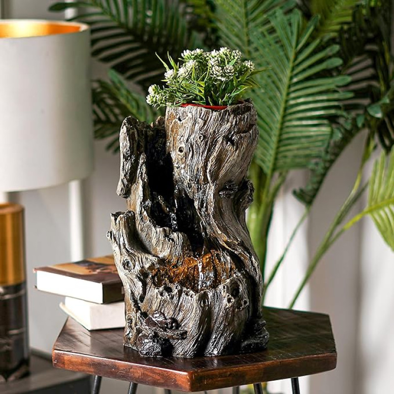 The Artment Mystic Canopy Rainforest Tree Trunk Shape Indoor Table Top Showpiece for Living Room, Office, Home Decor Waterfall Fountain with LED Lights | 14 Inch, Grey