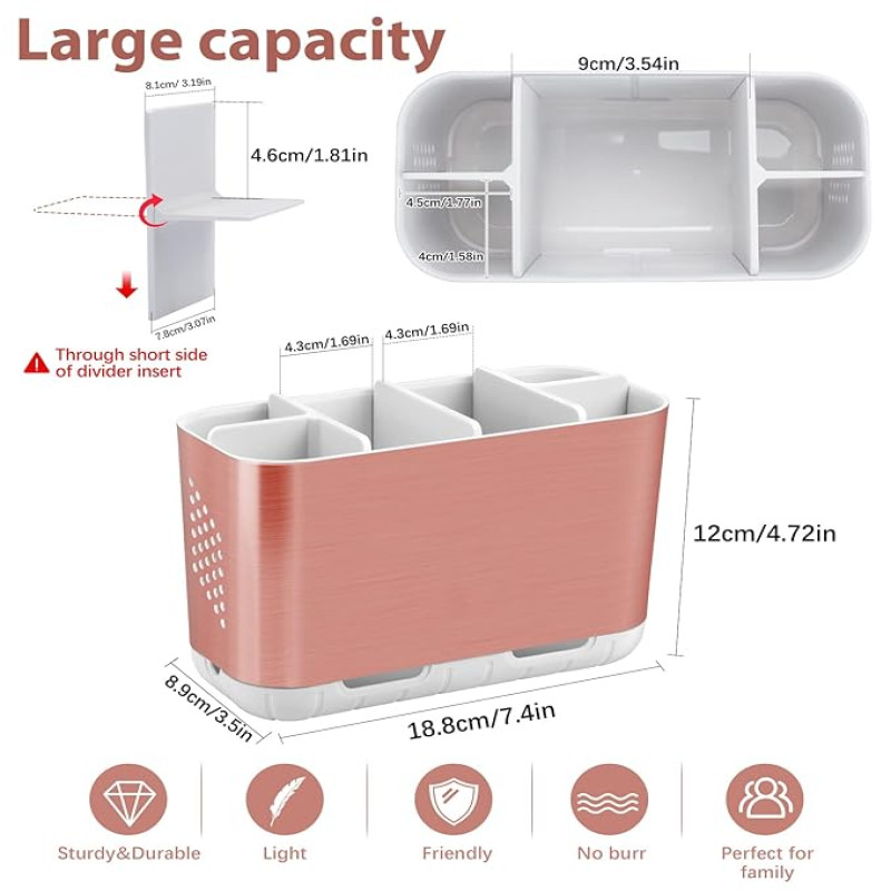 Tooth Brush Holder for Bathroom Organizer and Storage, Toothbrush Holder and Toothpaste Stand for Tongue Cleaner Comb Razor Shaving Kit and Toiletries Makeup Brush Holder, Bathroom Accessories Set