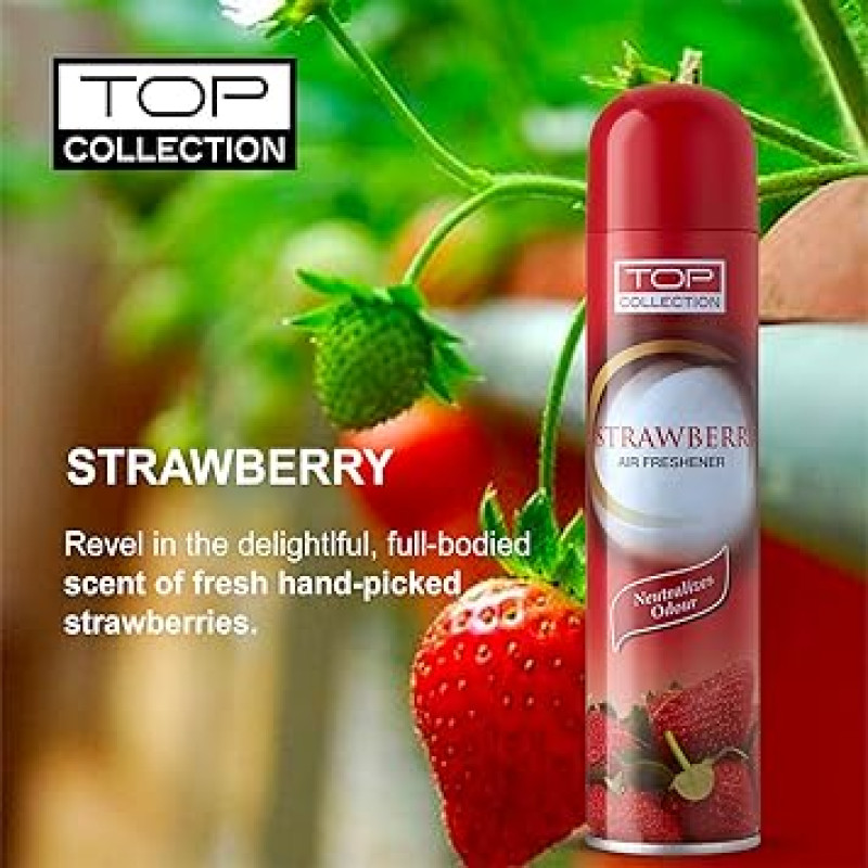 Revel in the delightful, full bodied scent of fresh handpicked strawberries. The fragrance of Strawberry eliminates unpleasant odours and freshens the air instantly.