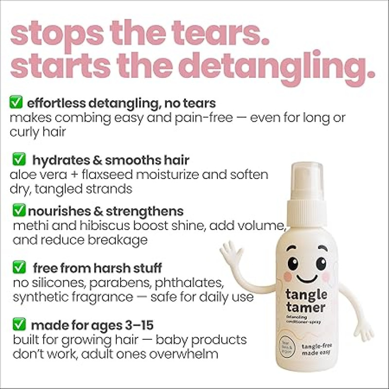 Tuco® Kids Tangle Tamer Hair Detangler Spray | Infused with Aloe Vera, Flaxseed & Methi | Ages 2-5, 4-10, 10-15, 5-10 Years | Paraben & Sulphate Free |100ml