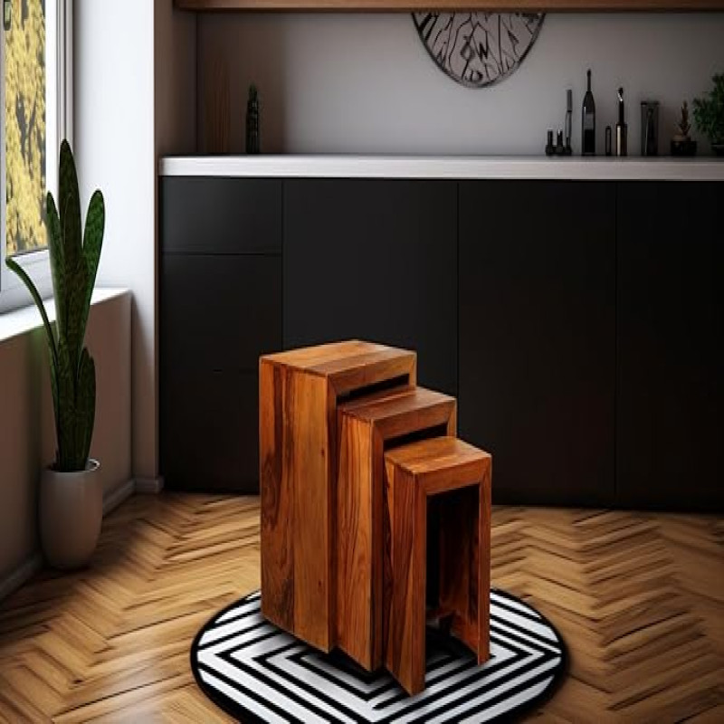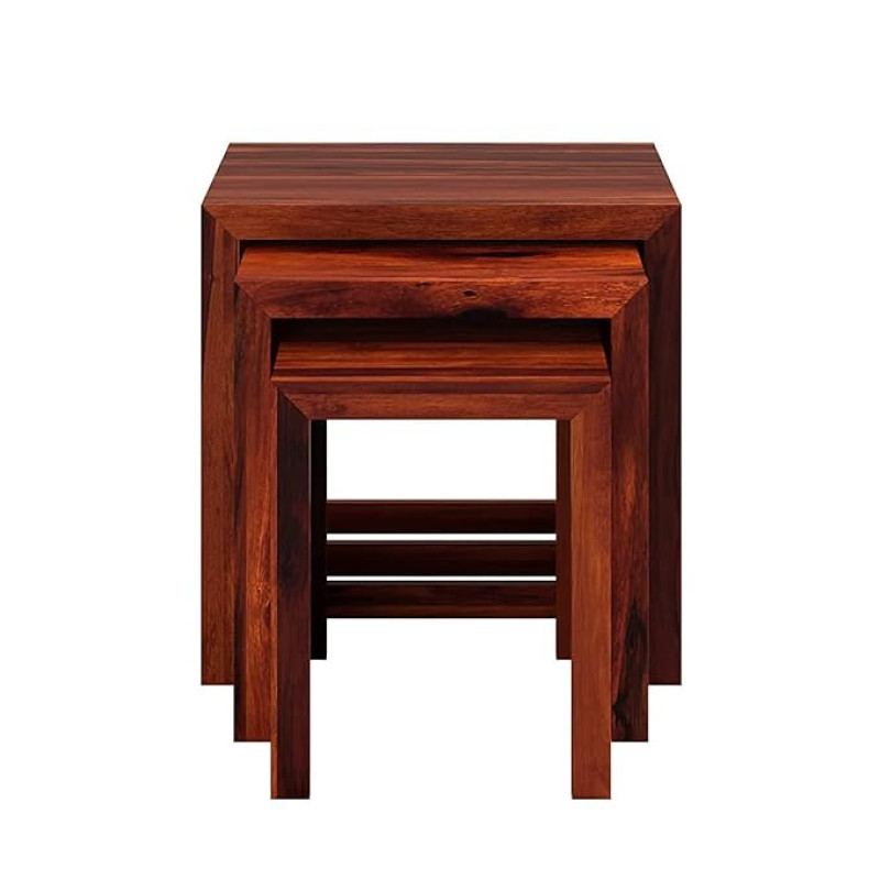 URBAN WOODS Nidium Nesting Table Set - Sheesham Wood, Honey Finish - Versatile and Space-Saving Furniture Trio for Stylish Home Interiors for Functional Living Spaces