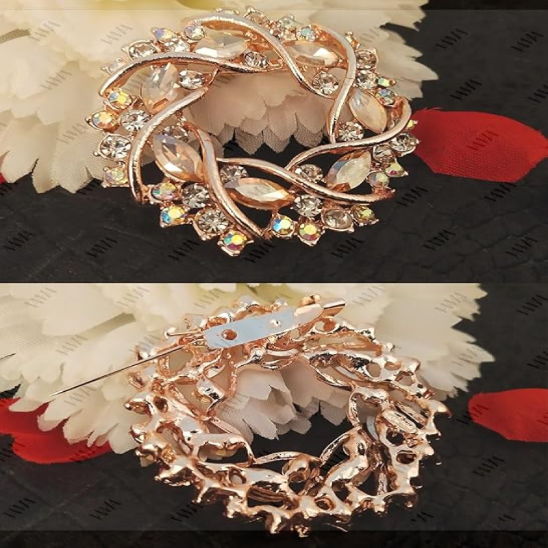 VAMA Golden Crystal Stone Saree Brooch Pins Floral Coat Dress Gown Shawl Wedding Bridal Brooch Accessories for Women & Girls (brooch pin for women)