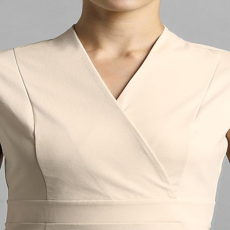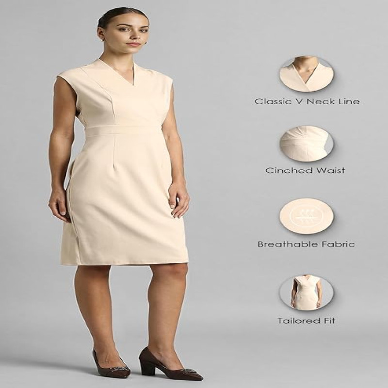 Women's Cotton Blend V Neck Mid-Length Sheath Comfort Fit Above The Knee Dress